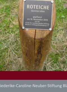 Eiche am Schloßteich - SignierungDie Eiche wurde, weil ein Symbol für Langlebigkeit, für die Neuberin gewählt und ist von der Stiftung gespendet worden.