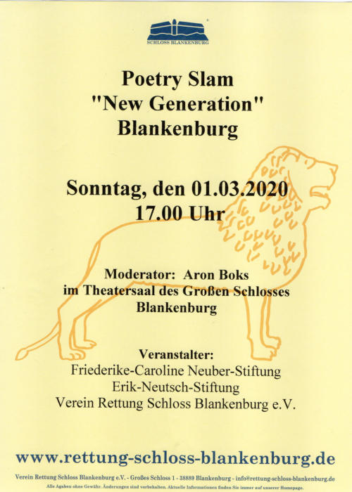 1. März 2020, 17.00 Uhr, Großes Schloss Blankenburg, Theatersaal