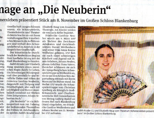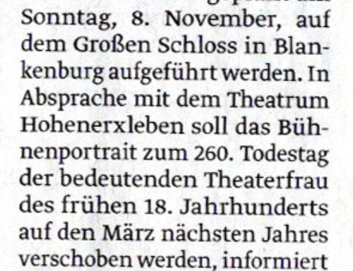 die Neuberin, die Neuberin-Stiftung und die Broschüre "Wo unsere Schauspielkunst zur Welt kam" vorzustellen. Die Lesung findet am 3. April