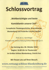 AKTUELL - Veranstaltungen 2023 14.6. 2023 um 18.00 Uhr im Großen Schloss Blankenburg (Grauer Saal)Lesung mit Aron Boks aus seinem Buch "Nackt in die DDR - Mein Urgrossonkel Willi Sitte und was die ganze Geschichte mit mir zu tun hat" 15. Oktober 2023 um 16.00 Uhr, Großes Schloss Blankenburg Innerhalb der Festwoche zu 900 Jahre Grosses Schloss Blankenburg spielt das Theatrum Hohenerxleben "Friederike Caroline Neuber - ein Bühnenporträt der großen Theaterfrau"